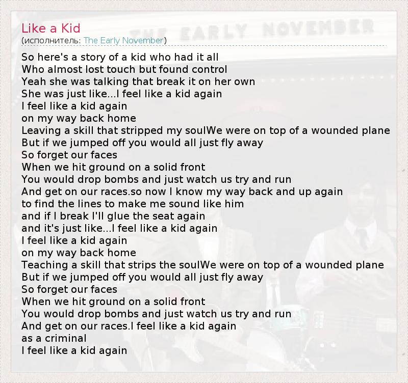 А как ты думаешь, о чем песня "Like a Kid" ?