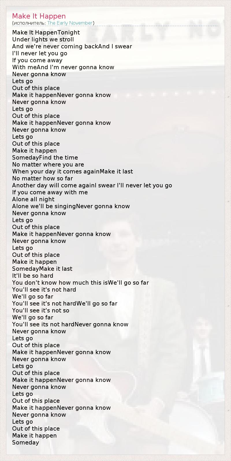 А как ты думаешь, о чем песня "Make It Happen" ?