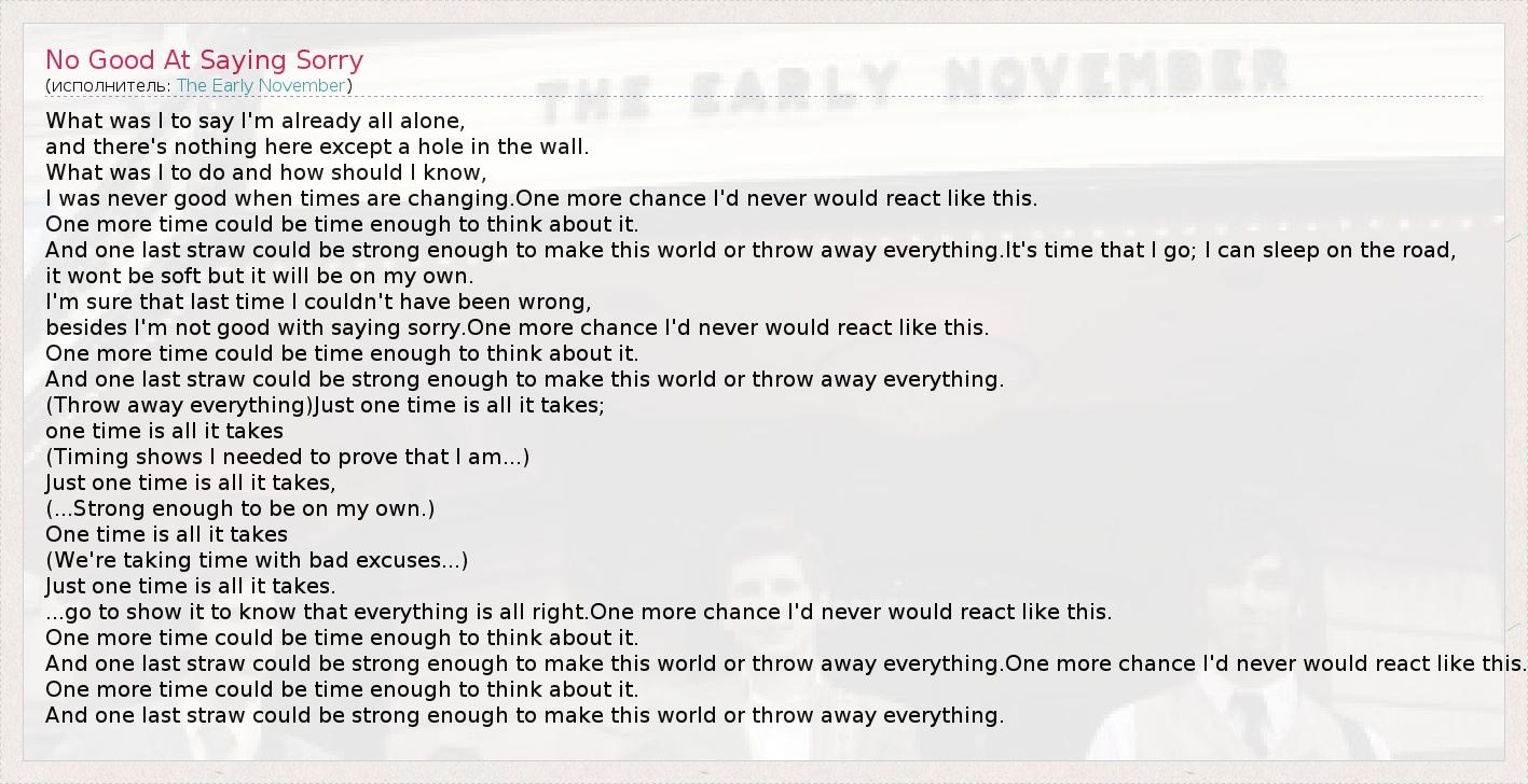 А как ты думаешь, о чем песня "No Good At Saying Sorry" ?
