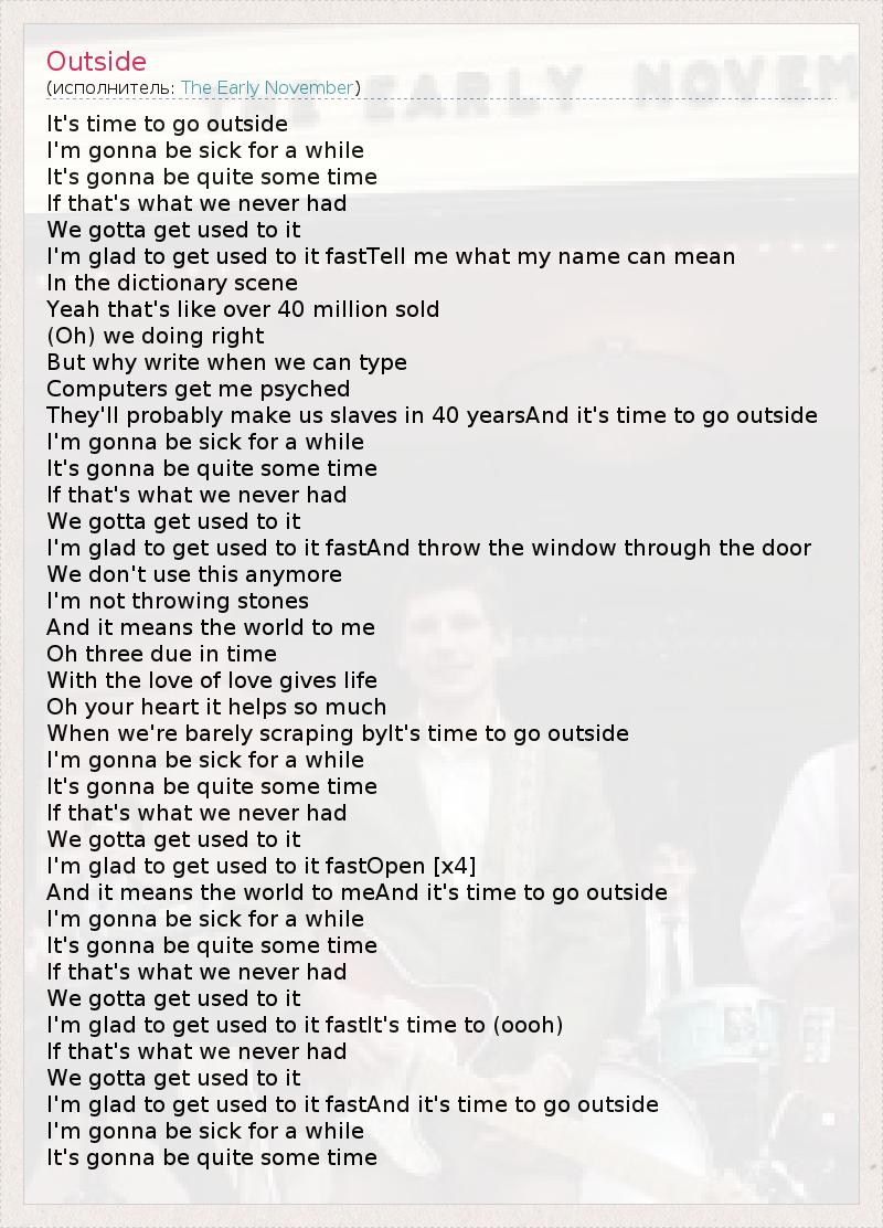 А как ты думаешь, о чем песня "Outside" ?
