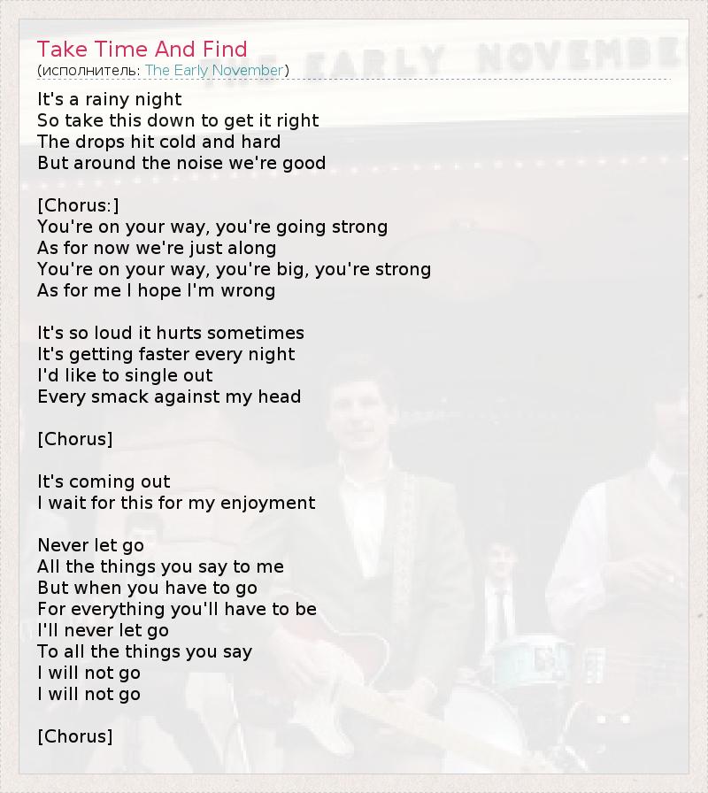 А как ты думаешь, о чем песня "Take Time And Find" ?