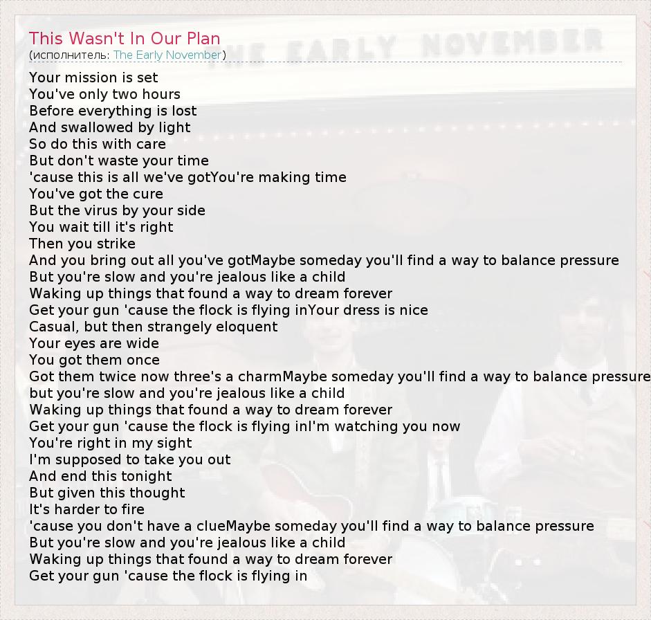 А как ты думаешь, о чем песня "This Wasn't In Our Plan" ?