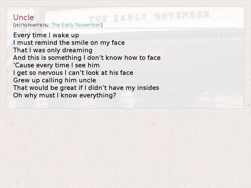 Это интересно:The Early November собрались городе Хаммонтон, штат Нью-Джерси, США, где Ace Enders, барабанщик Jeff Krummer и басист Sergio Anello впервые попробывали играть вместе. Позже к ним присоединился гитарист Joe Marro. После того, как ребята отослали своё демо в Drive Thru Records, им тут же предложили контракт. В пределах нескольких месяцев их EP For All Of This был записан в оригинальной и акустической версии. В то же время аудитория по... продолжение