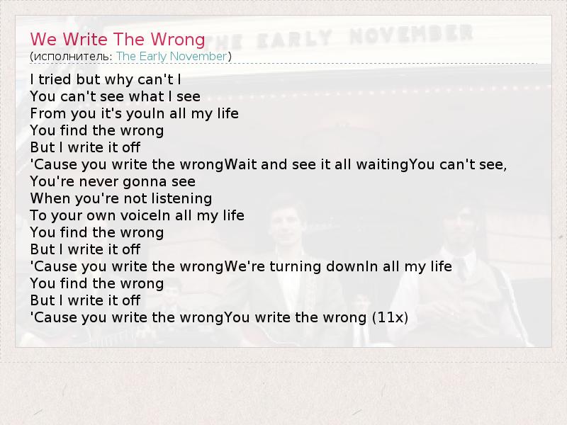 А как ты думаешь, о чем песня "We Write The Wrong" ?