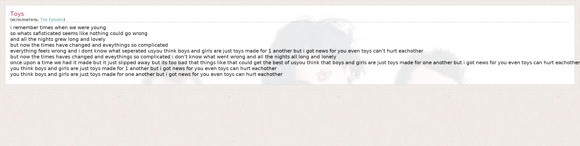 i remember times when we were young so whats safisticated seems like nothing could go wrong and all the nights grew long and lovely but now the times have changed and eveythings so complicated everything feels wrong and i dont know what seperated usyou think boys and girls are just toys made for 1 another but i got news for you even toys can't hurt eachother but now the times haves changed and eveythings so complicated i don't know what went wrong and all the nights all long and lonely once upon a time we had it made but it just slipped away but its too bad that things like that could get the best of usyou think that boys and girls are just toys made for one another but i got news for you even toys can hurt eachother you think boys and girls are just toys made for 1 another but i got news for you even toys can hurt eachother you think boys and girls are just toys made for one another but i got news for you even toys can hurt eachother