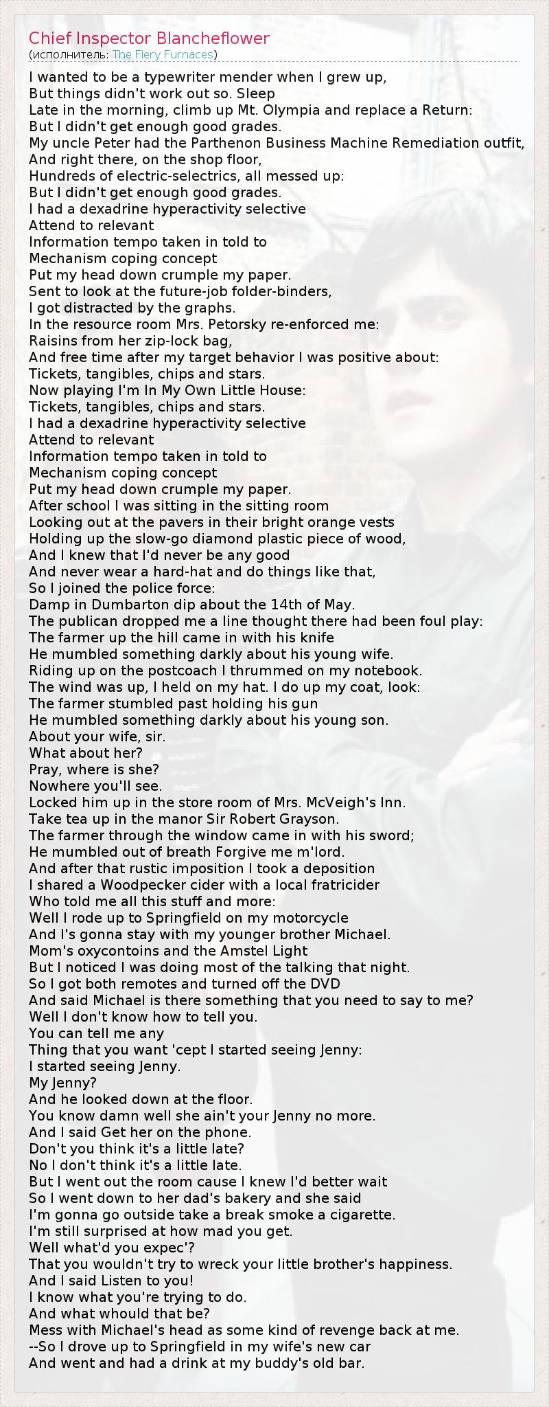 А как ты думаешь, о чем песня "Chief Inspector Blancheflower" ?