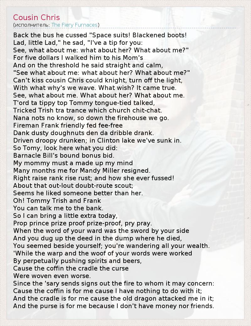 А как ты думаешь, о чем песня "Cousin Chris" ?