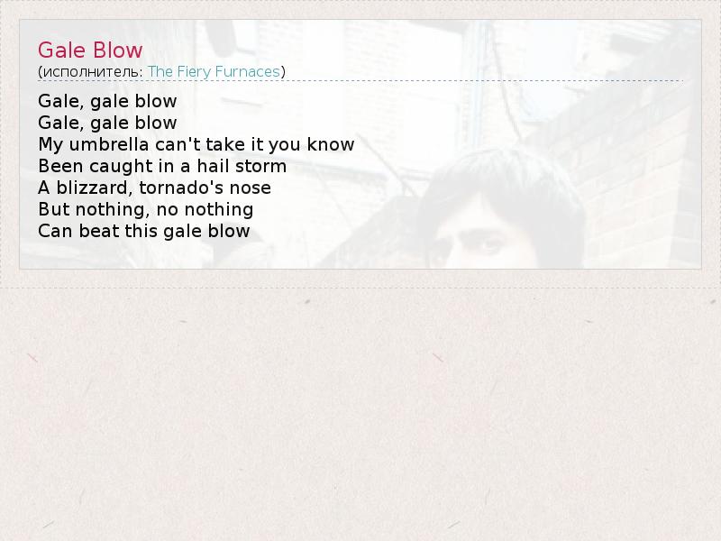 А как ты думаешь, о чем песня "Gale Blow" ?