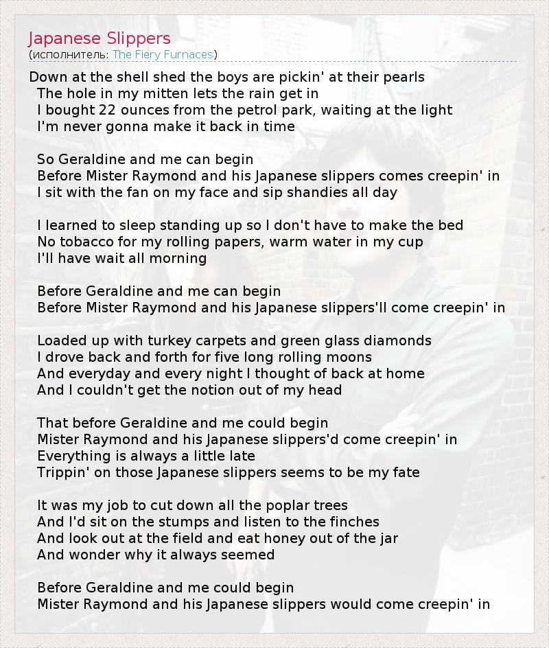 А как ты думаешь, о чем песня "Japanese Slippers" ?