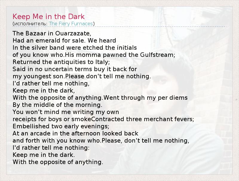 А как ты думаешь, о чем песня "Keep Me in the Dark" ?