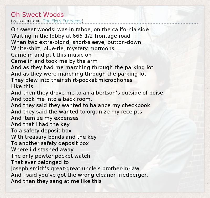 А как ты думаешь, о чем песня "Oh Sweet Woods" ?