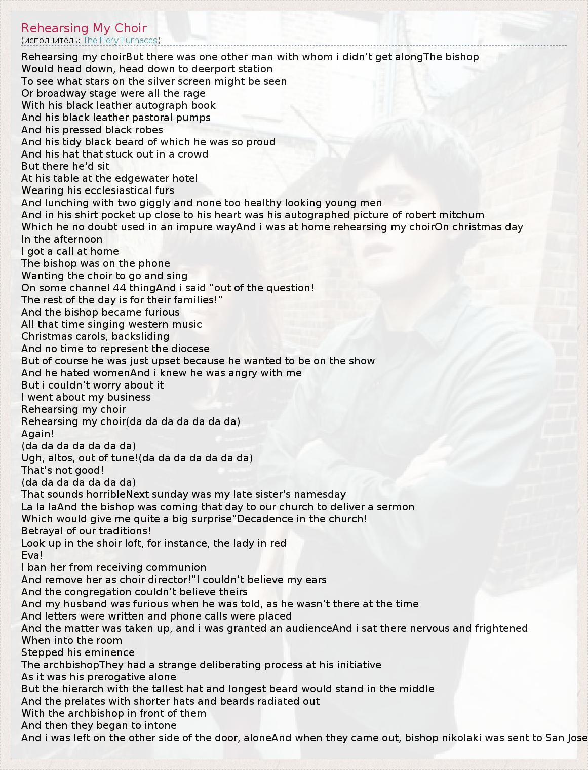 А как ты думаешь, о чем песня "Rehearsing My Choir" ?