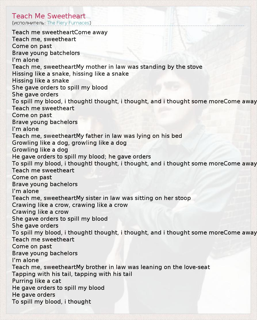 А как ты думаешь, о чем песня "Teach Me Sweetheart" ?