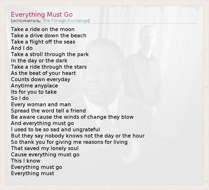 А как ты думаешь, о чем песня "Everything Must Go" ?