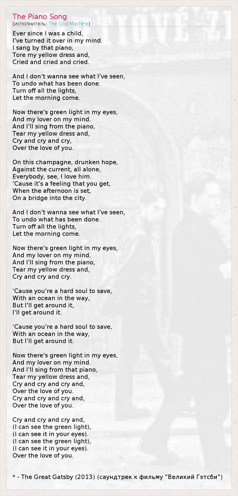 А как ты думаешь, о чем песня "The Piano Song" ?