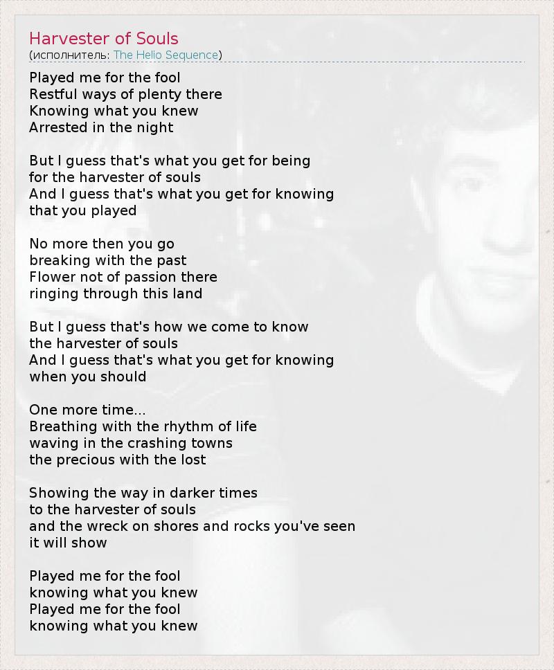 А как ты думаешь, о чем песня "Harvester of Souls" ?