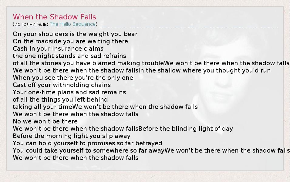 А как ты думаешь, о чем песня "When the Shadow Falls" ?