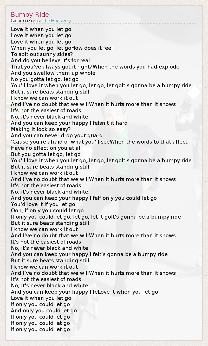 If only you could let go, let go, let it goIt's gonna be a bumpy ride