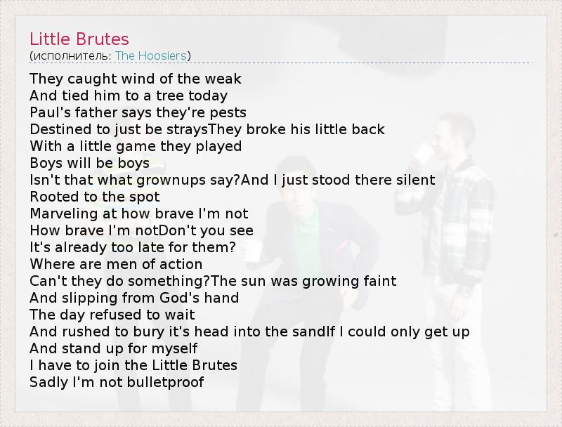 А как ты думаешь, о чем песня "Little Brutes" ?