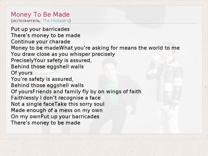А как ты думаешь, о чем песня "Money To Be Made" ?