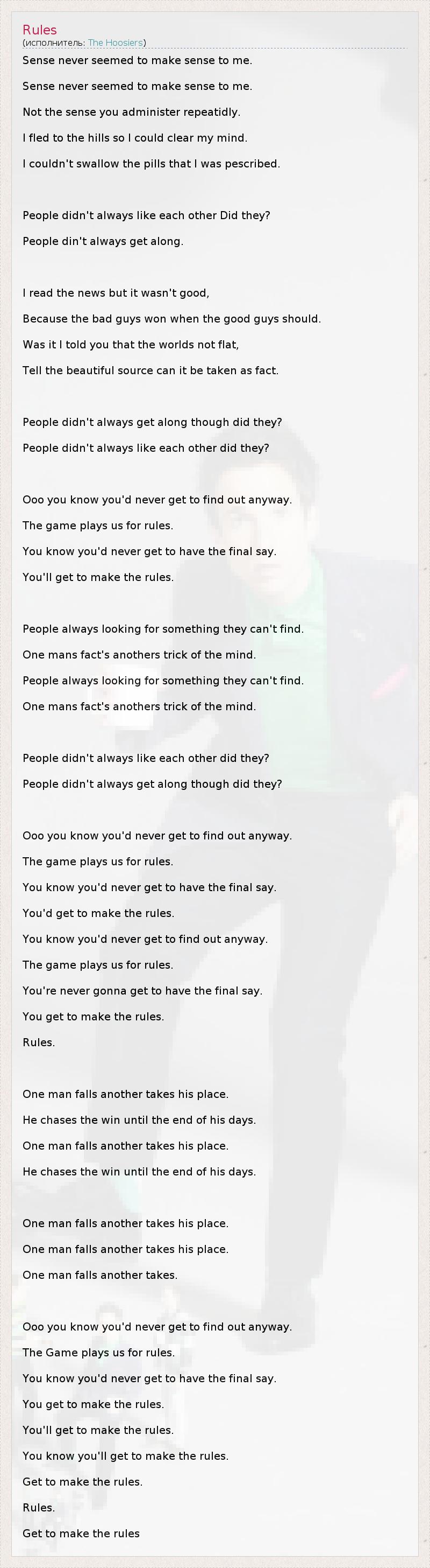 Это интересно:The Hoosiers — одна из самых многообещающих инди-рок групп Великобритании. История группы началась с дружбы двух будущих участников группы, Ирвина (Irwin Sparkes) и Альфонсо (Alphonso Sharland). Учиться лучшие друзья поехали в институт Индианаполиса. Уже тогда Ирвин показывал похвальную работоспособность: несмотря на то что у него была астма, он с Альфонсо сумел выиграть важный турнир по футболу. Одновременно... продолжение