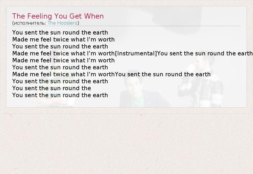 А как ты думаешь, о чем песня "The Feeling You Get When" ?