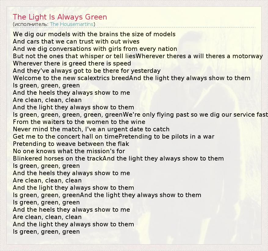 А как ты думаешь, о чем песня "The Light Is Always Green" ?
