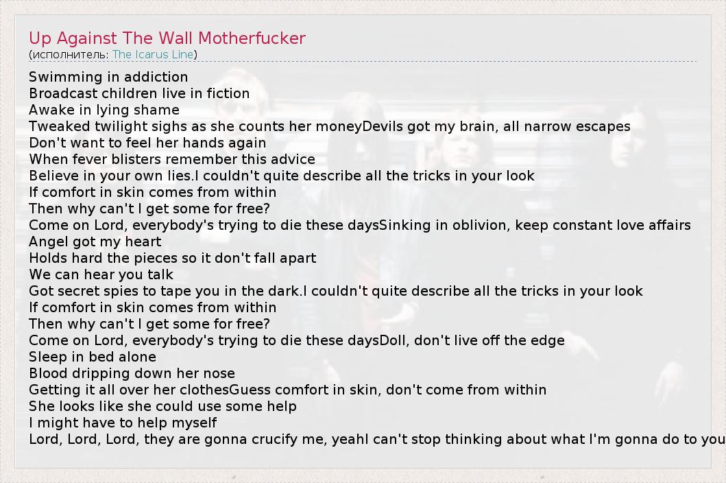 ГлавнаяИсполнителиThe Icarus LineUp Against The Wall Motherfucker