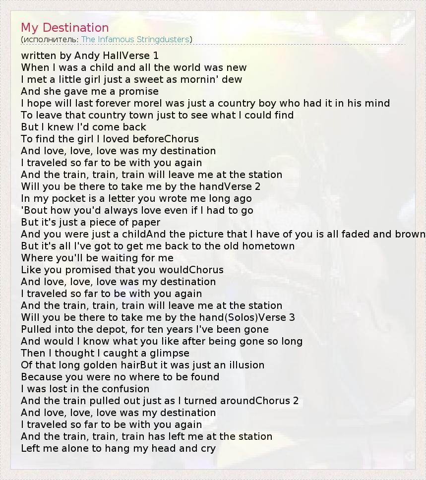 А как ты думаешь, о чем песня "My Destination" ?