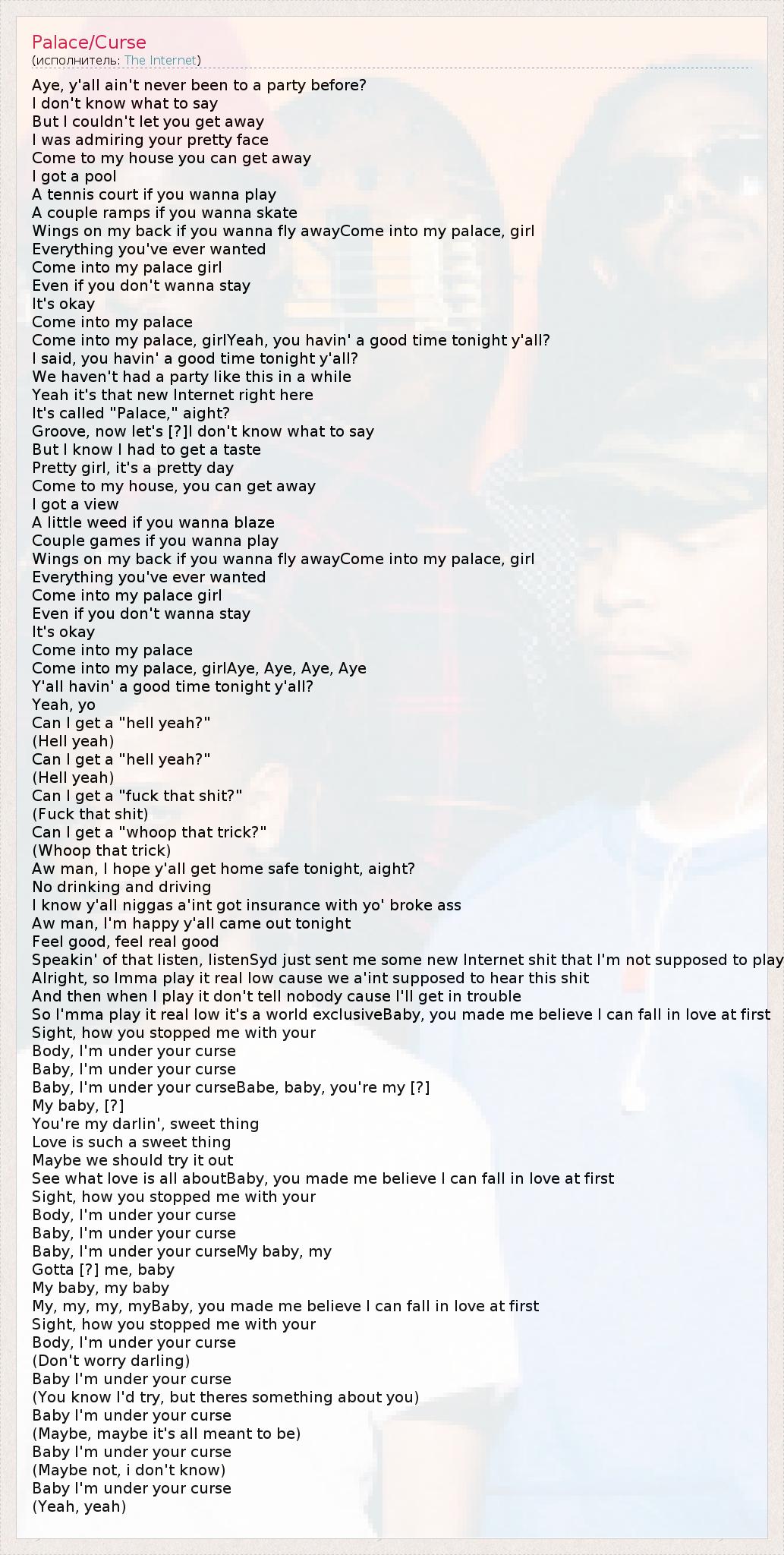 А как ты думаешь, о чем песня "Palace/Curse" ?