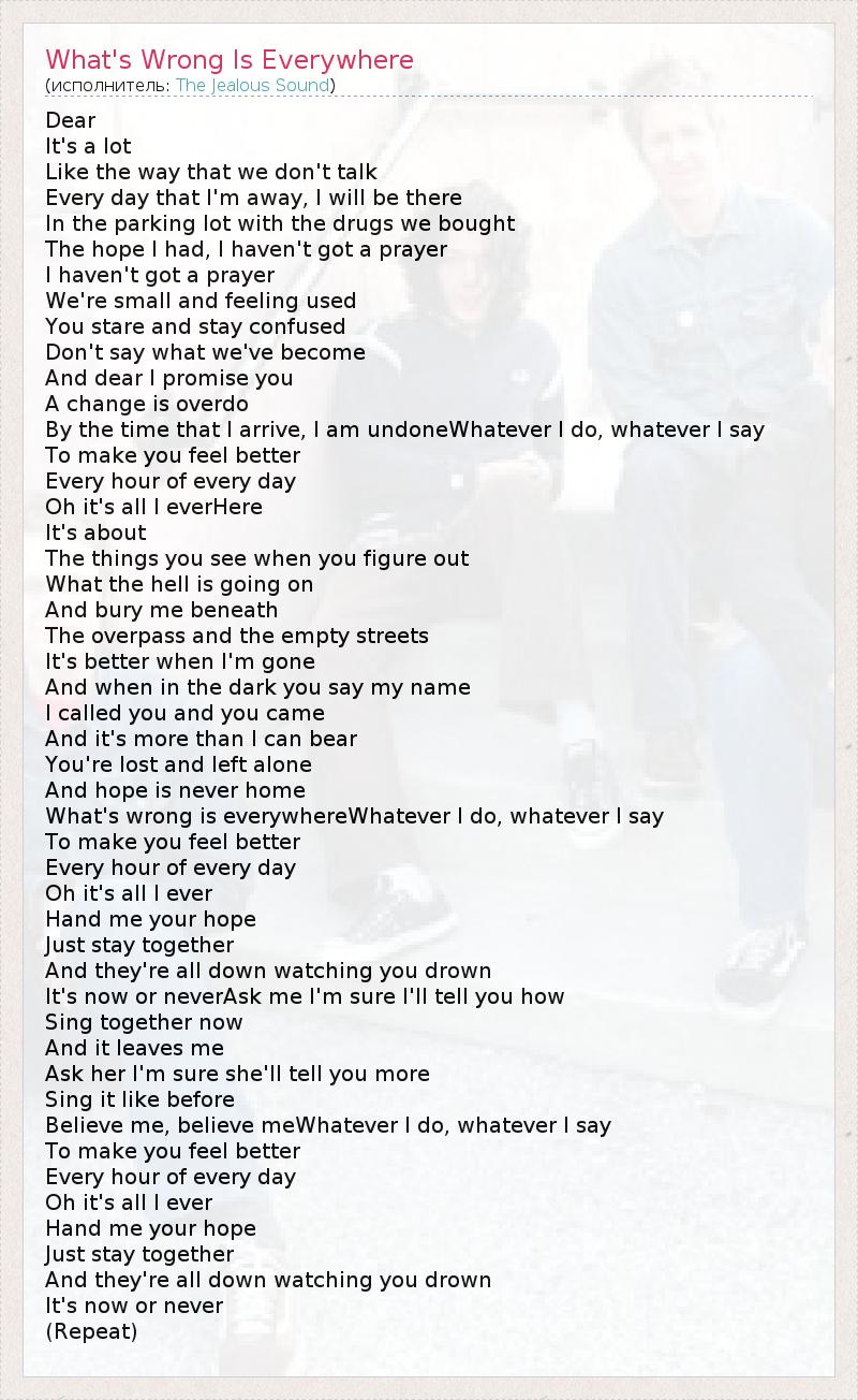 What's wrong is everywhereWhatever I do, whatever I say