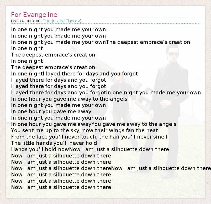 А как ты думаешь, о чем песня "For Evangeline" ?
