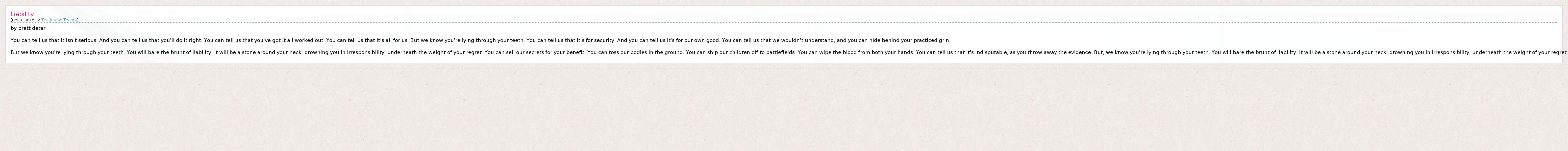 А как ты думаешь, о чем песня "Liability" ?