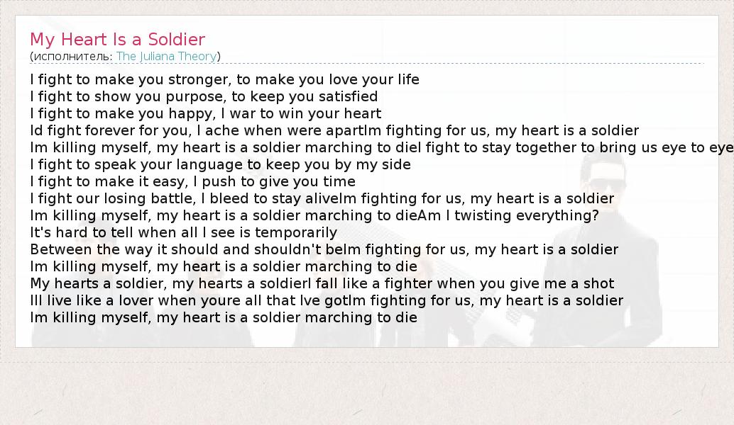А как ты думаешь, о чем песня "My Heart Is a Soldier" ?