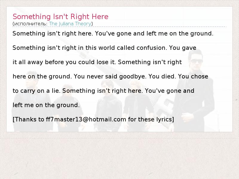 А как ты думаешь, о чем песня "Something Isn't Right Here" ?