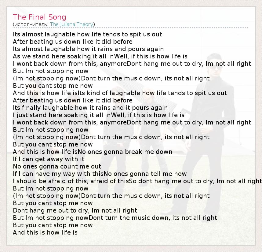 I wont back down from this, anymoreDont hang me out to dry, Im not all right