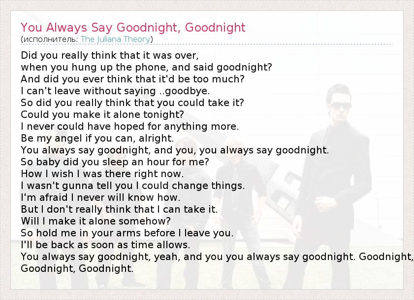 ГлавнаяИсполнителиThe Juliana TheoryYou Always Say Goodnight, Goodnight