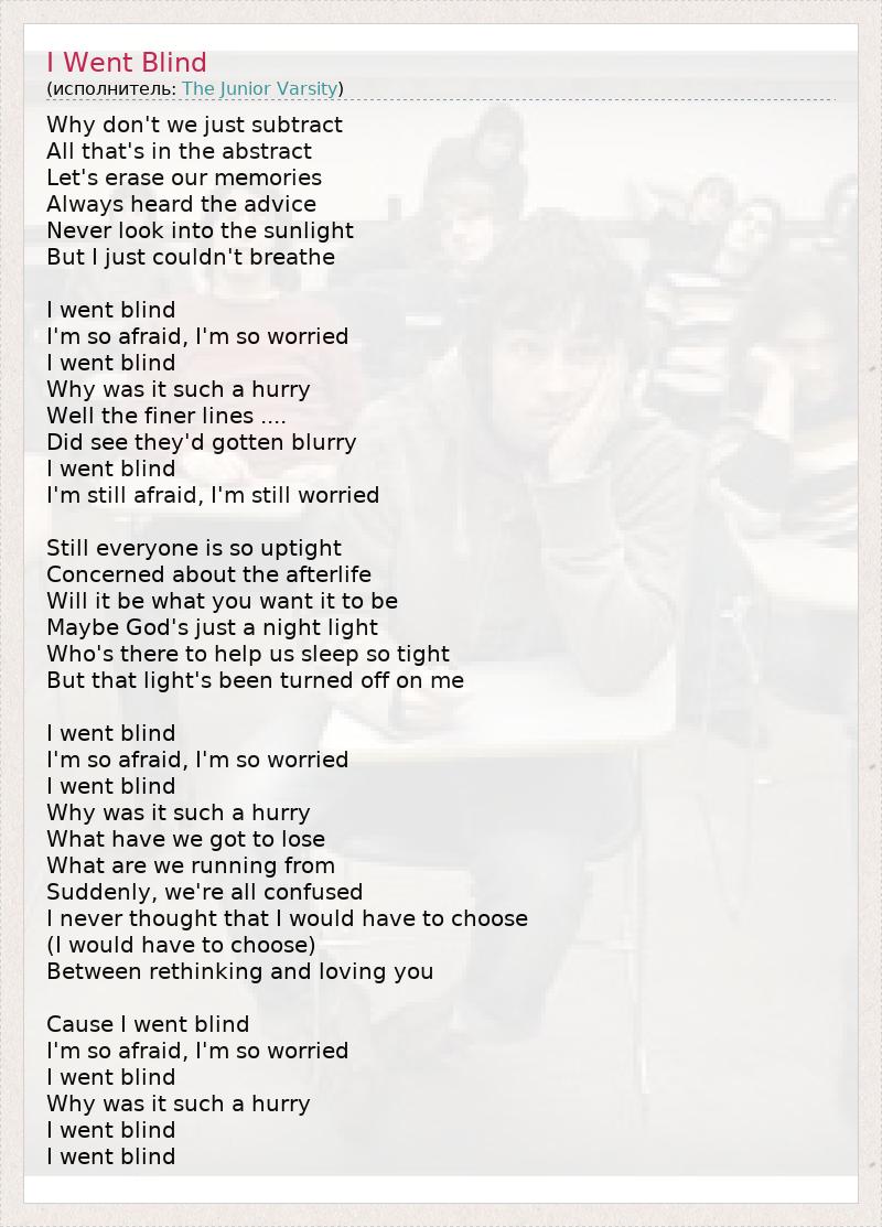 А как ты думаешь, о чем песня "I Went Blind" ?