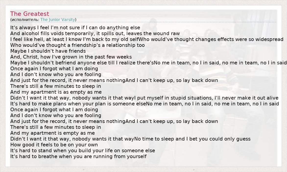 А как ты думаешь, о чем песня "The Greatest" ?