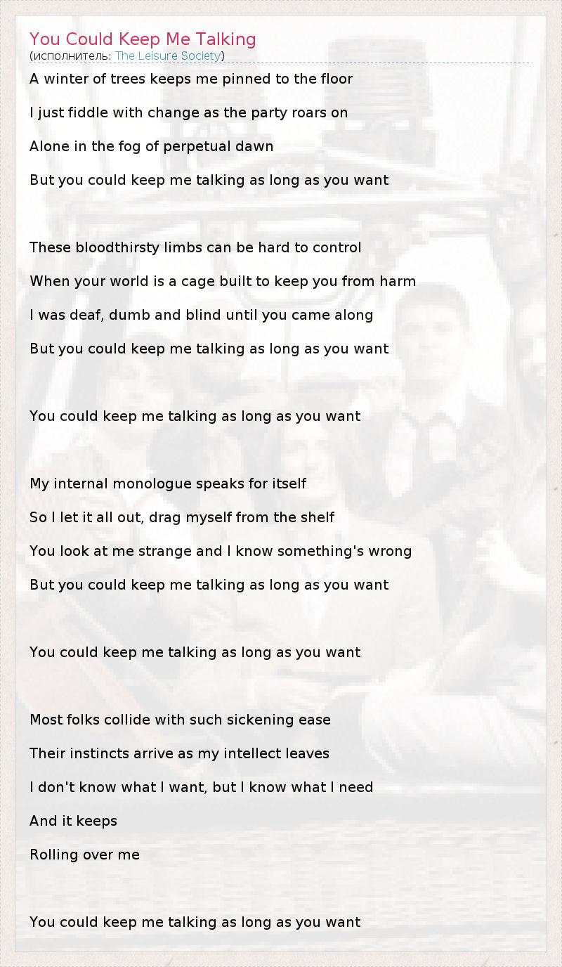 А как ты думаешь, о чем песня "You Could Keep Me Talking" ?