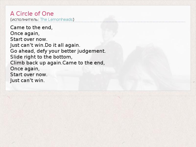 А как ты думаешь, о чем песня "A Circle of One" ?