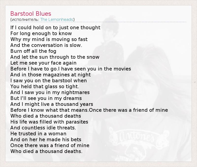 А как ты думаешь, о чем песня "Barstool Blues" ?