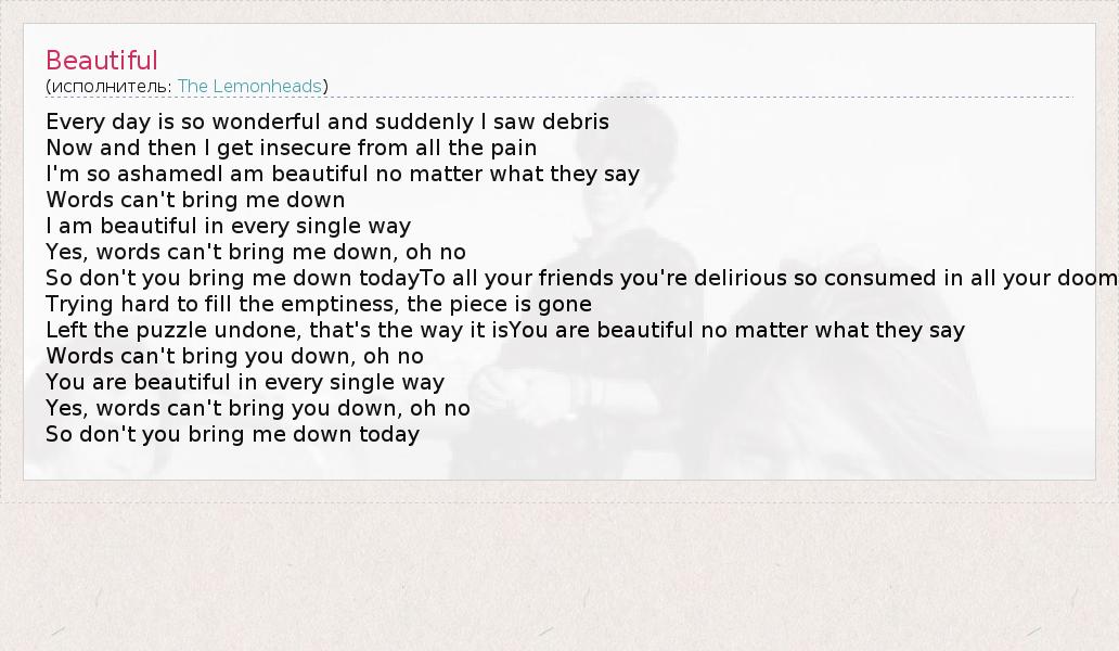 Left the puzzle undone, that's the way it isYou are beautiful no matter what they say