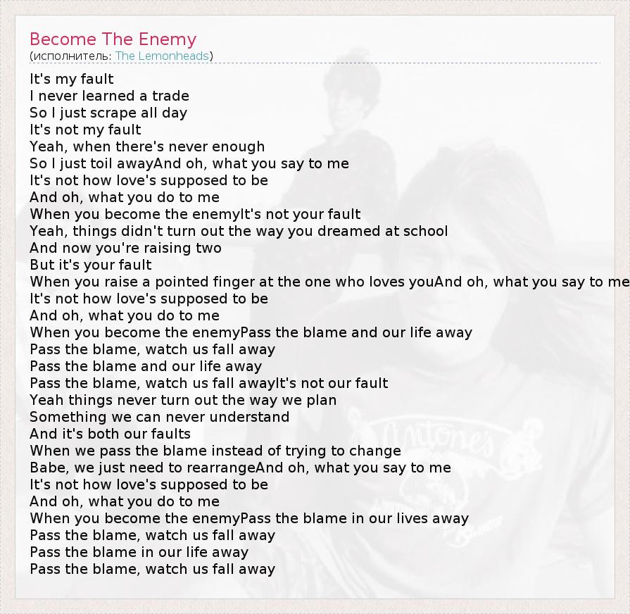 А как ты думаешь, о чем песня "Become The Enemy" ?