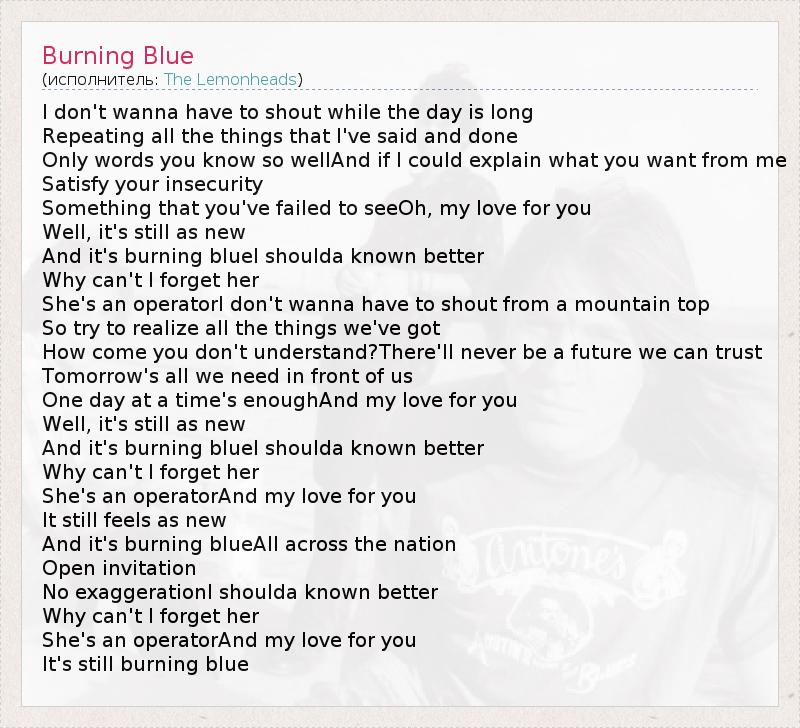 А как ты думаешь, о чем песня "Burning Blue" ?