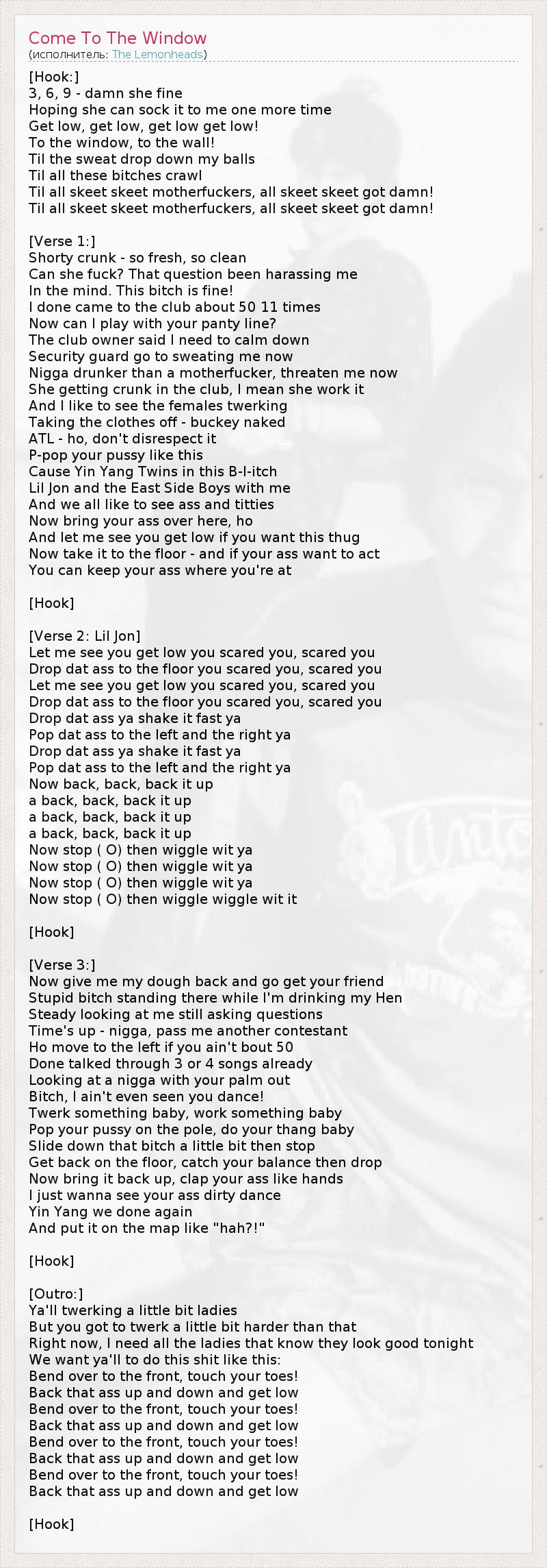 А как ты думаешь, о чем песня "Come To The Window" ?