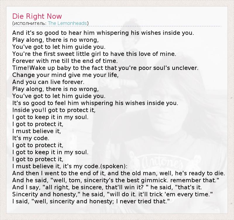 А как ты думаешь, о чем песня "Die Right Now" ?