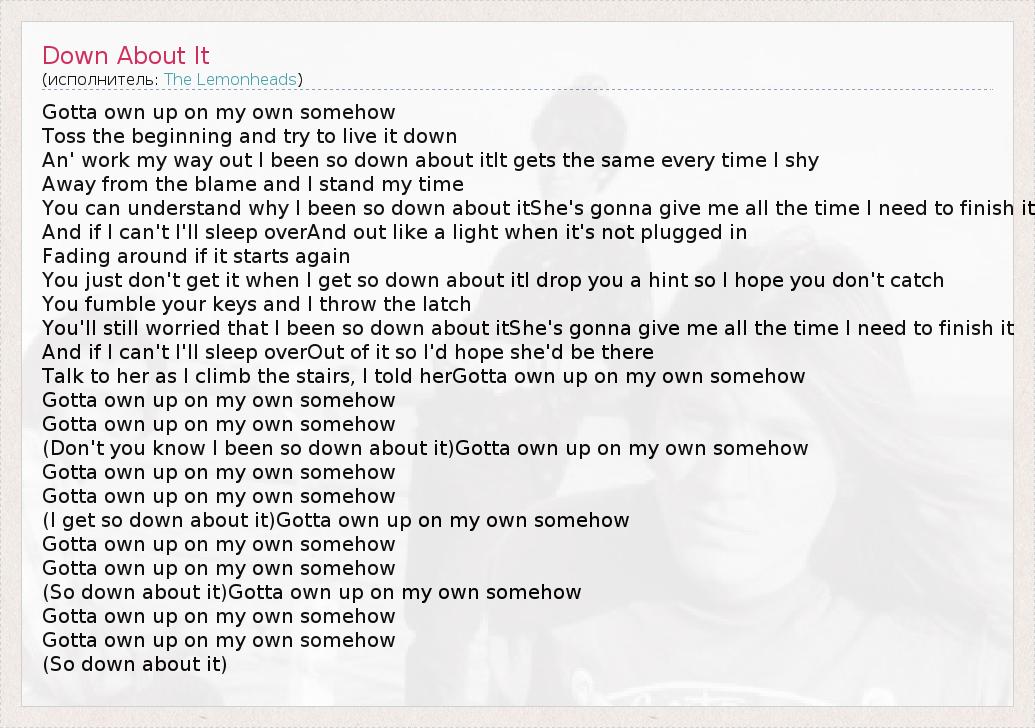 А как ты думаешь, о чем песня "Down About It" ?