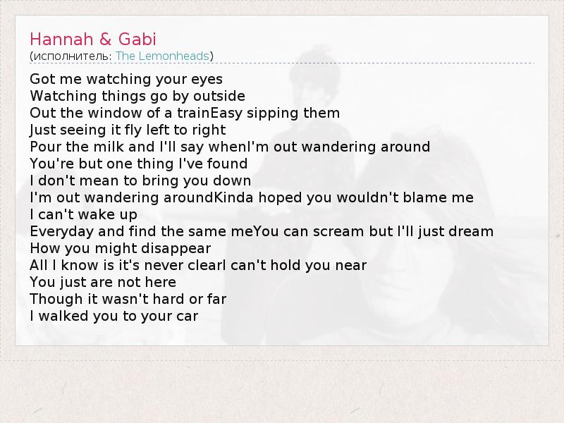 А как ты думаешь, о чем песня "Hannah & Gabi" ?
