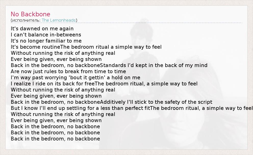 А как ты думаешь, о чем песня "No Backbone" ?